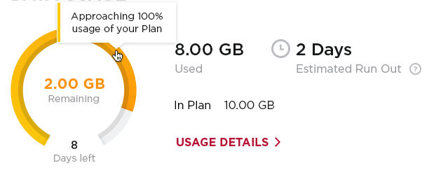 - Yellow = 80-99% of the data included in your plan, including any additional usage purchased